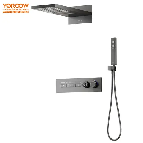 كجهاز أيقوني في الحمامات العصرية الراقية, طقم الدش المخفي المدمج باللون البرونزي مفضلة للغاية لتصميمها الجمالي البسيط وأدائها الممتاز. تقوم طريقة تركيبه الفريدة المخفية بتضمين أنابيب المياه وصمامات الخلط بذكاء في الحائط، لتكشف فقط عن رأس الدش المعدني ورذاذ المياه المحمول باليد ولوحة التحكم. وبفضل طلاءه بطبقة من المعدن المعدني المعالج بتقنية الطلاء بالتفريغ PVD، لا يُظهر فقط ملمسًا معدنيًا منخفضًا وفاخرًا بل يتميز أيضًا بمقاومة فائقة للتآكل ومقاومة الأكسدة ومقاومة الأوساخ. أطقم الدش التي تنتجها مصانع الحنفيات الصينيةمصنوعة من مواد عالية الجودة من النحاس الأصفر أو الفولاذ المقاوم للصدأ ومعالجة بدقة لتلبية المعايير الدولية، كما أنها تقدم خدمات مخصصة وتستخدم على نطاق واسع في مختلف الأماكن الراقية. فيما يلي دليل التثبيت المفصل لمساعدتك على إكمال التثبيت بسلاسة.